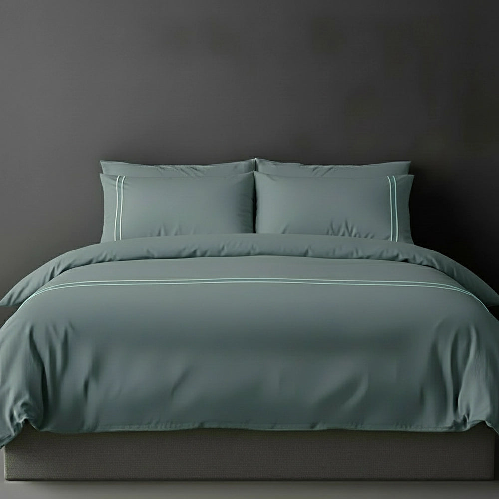 Sophisticated duck egg plain duvet cover set engineered from 100% cotton percale 200TC. Features coordinated plain pillowcases and professional-grade construction tailored for luxury hospitality environments.